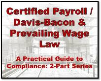 Construction Payroll Compliance Cyber Week Special - Save $150! Certified Payroll • Prevailing Wage Law • Davis-Bacon Act When a contractor makes the move from residential/commercial construction projects to government-funded construction projects, which have certified payroll reporting requirements, it can be overwhelming for the contractor, its office staff, and the accounting professionals who support them. This often complex requirement can lead to major problems, including non-approval of payment requisitions, denial of payment for change orders and claims, and contract termination |